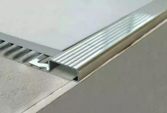 在楼梯踏步等瓷砖地面阳角收口,通常会采用专业的踏步地砖进行,否则阳角无法处理。采用定制金属收口条,可以很好的解决踏步的阳角收口。