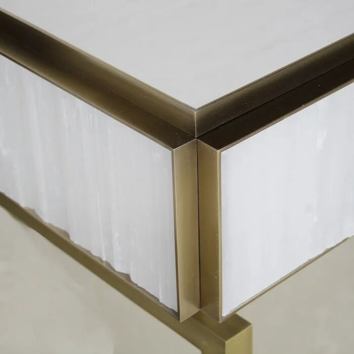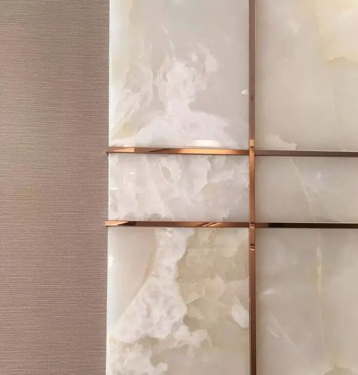 对于大理石等石材的阳角收口,由于石材的可加工性,一般工程项目采用45度海棠角对碰,或者磨边、粘接等等收口方式,较少采用(没必要)金属条收口。