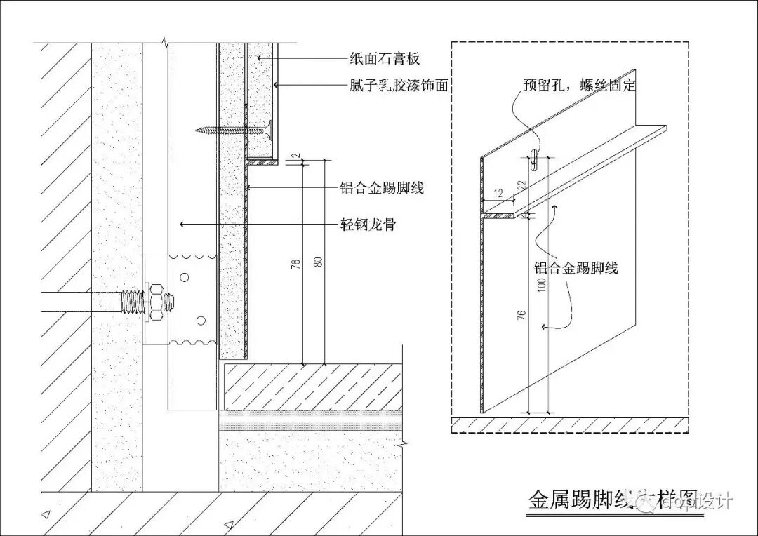 上周分享了一篇《如果不做踢脚线,墙地面该怎么收口?》的文章,很多小伙伴后台留言说,想要看到更多关于收口节点和收口图集相关的内容。