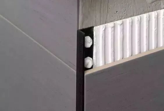 瓷砖墙面的阳角收口,以往我们经常采用的是45度倒角对碰,施工质量的把控在于工人的施工操作,而且在使用过程容易发生磕碰,会产生很多的质量问题,曾经也有项目采用一些阳角收口条,但相对形式比较单一,材质也比较低端(常用PVC等)。