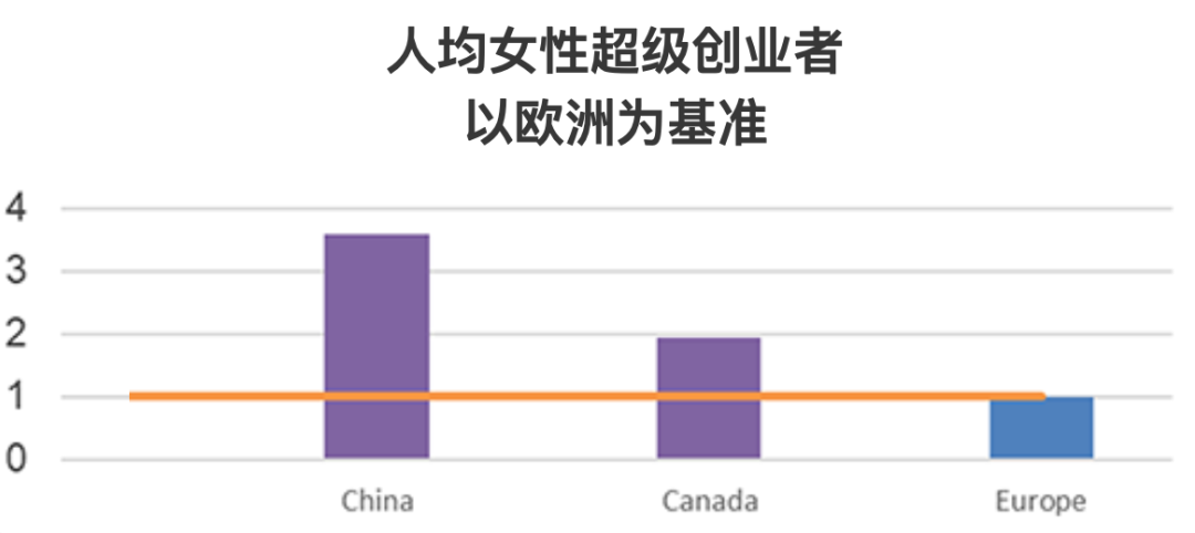 但在中国的超级企业家中,有高达8%的女性比例。相对应的,在美国这一比例为 4%,欧洲则低于 3%。而从人均的角度来看,中国的女性超级企业家的密度是欧洲的三倍有余!