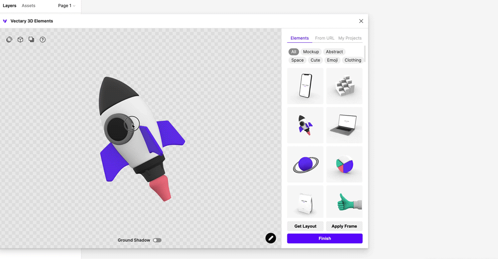 快速添加3D元素。不仅可以使用它内置的3D元素,还可以使用外部链接和自己团队制作的3D模型,用它作3D组件库非常方便了。