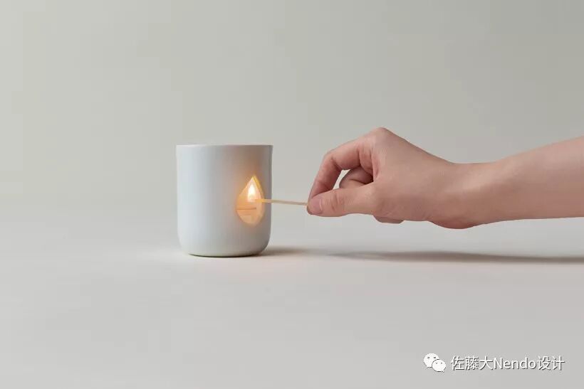 香薰烛台。我们在支座的侧面增加了一个火焰状的开口,以便在蜡烛插入蜡烛后轻松点燃。开口也增加了支架内部的气流,有助于扩散蜡烛的气味。