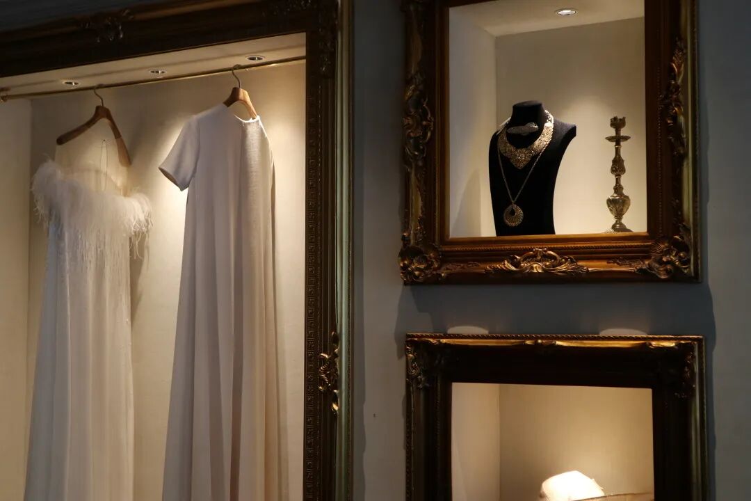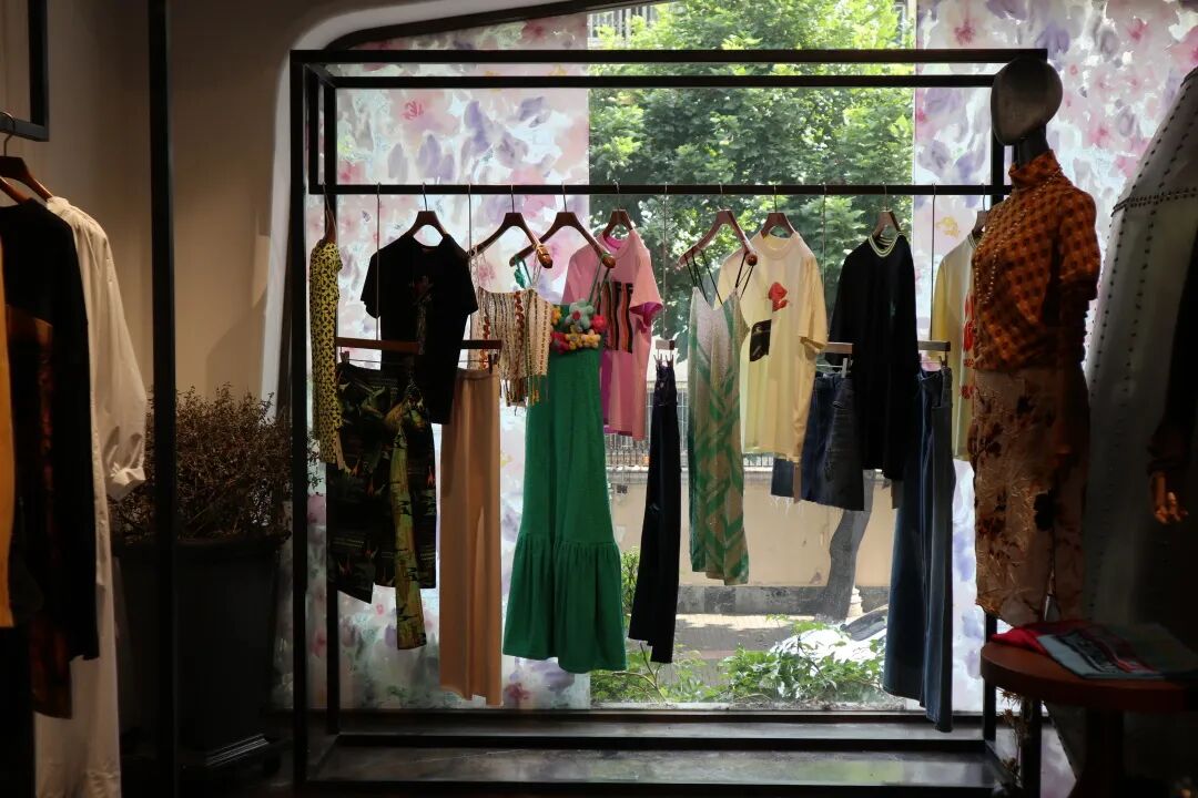 再观察一下周围的橱窗,琳琅满目的服装和首饰处处都强化着买手店的符号。随性、精致、优雅充盈着整个空间。