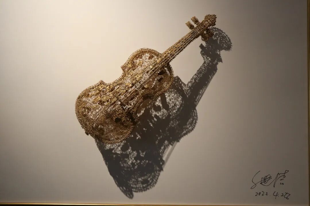 让我印象最深刻的,还是墙上这把被细致勾勒的“小提琴”艺术品。伴随着不同的光影变幻,从每个角度看上去都有不同的美感。