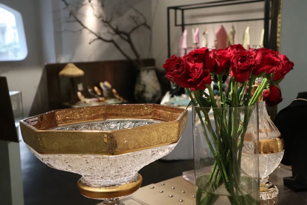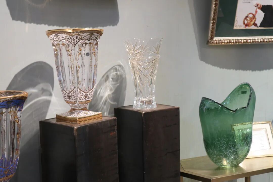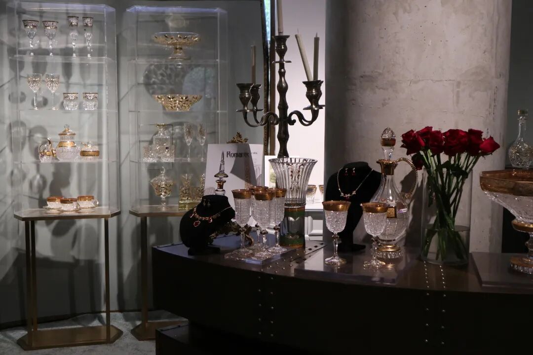 除开时装、服饰穿搭配件和一些装饰品,各种知名或小众品牌的玻璃水晶器皿也从世界各地被淘来,感觉又像是在逛博物馆,一步一景,空间也开始有了光泽度。