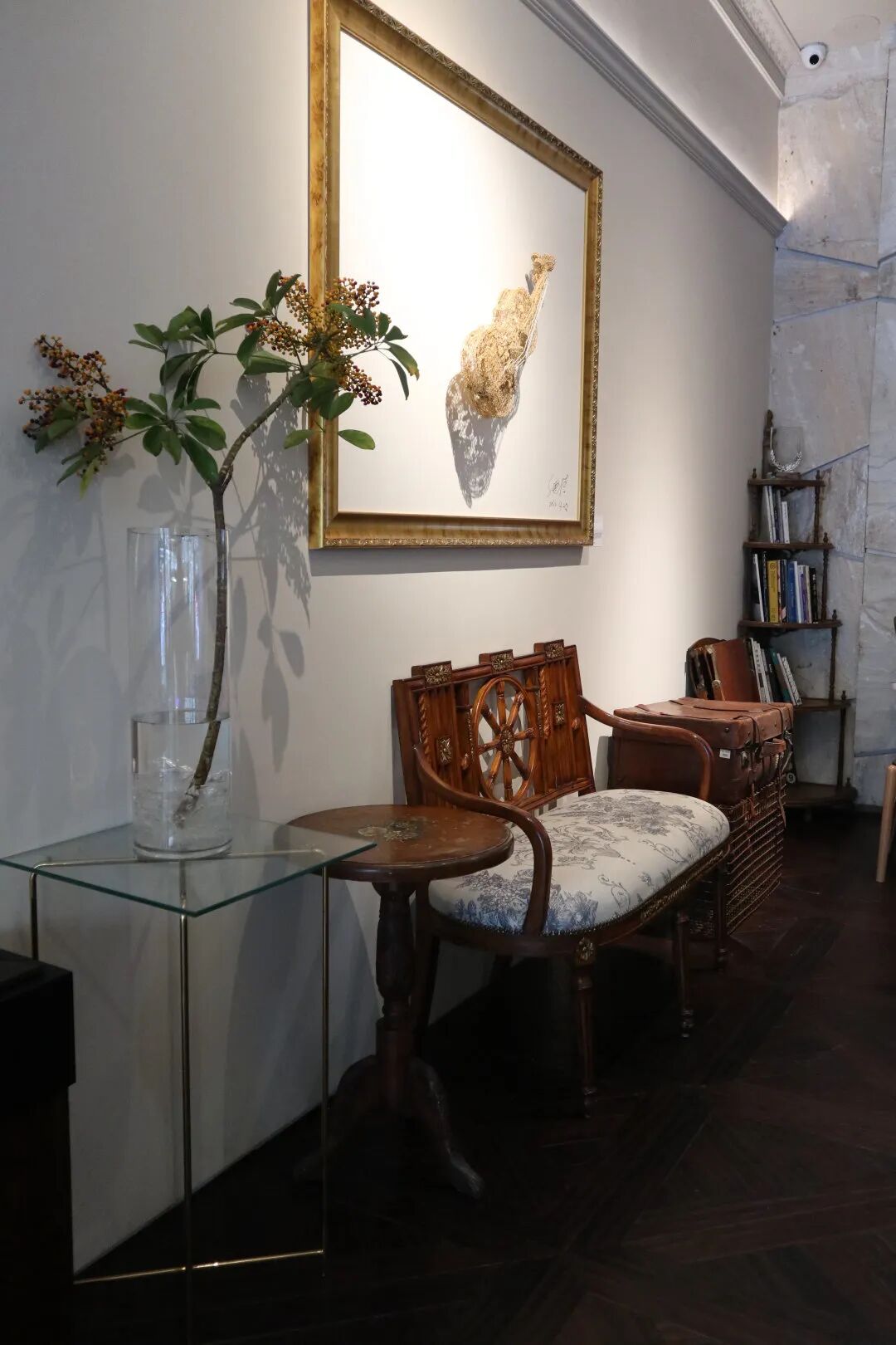 随处可见的玻璃花瓶插满了花,摆在桌上成为人们天然的拍照背景。墙上的挂画、精致的灯具、复古的家具桌椅等无不展示着店主和设计师的时尚品味和生活态度。