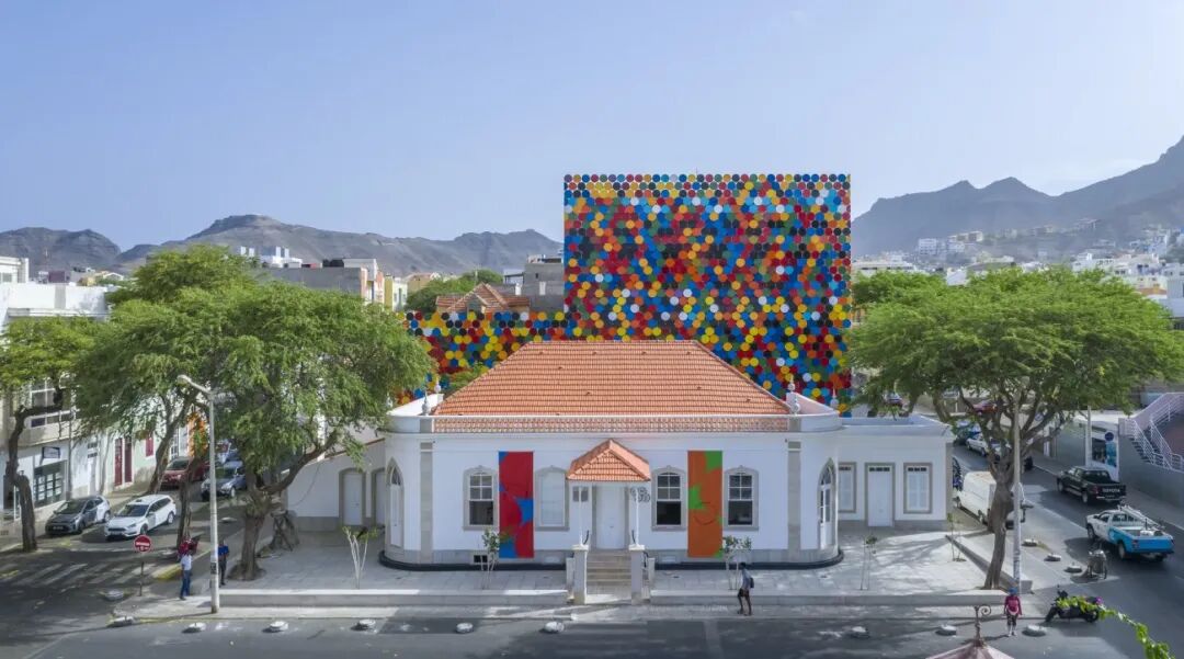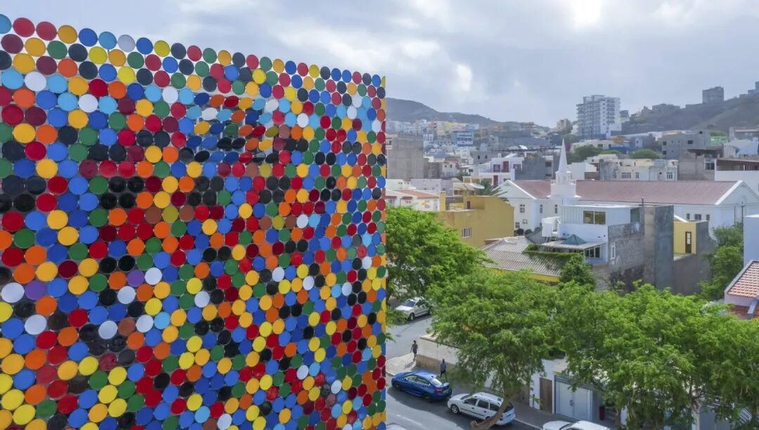 The colors hide a musical score. Each colors is a musical note. We wanted to use the perceptual phenomenon of synesthesia so a Caboverdian composer and multistrumentist, Vasco Martins, was invited to partecipate and wrote the music behind the colors. Paying homage to the musical traditions of the islands and trasmitting a visual musical joy to the square.