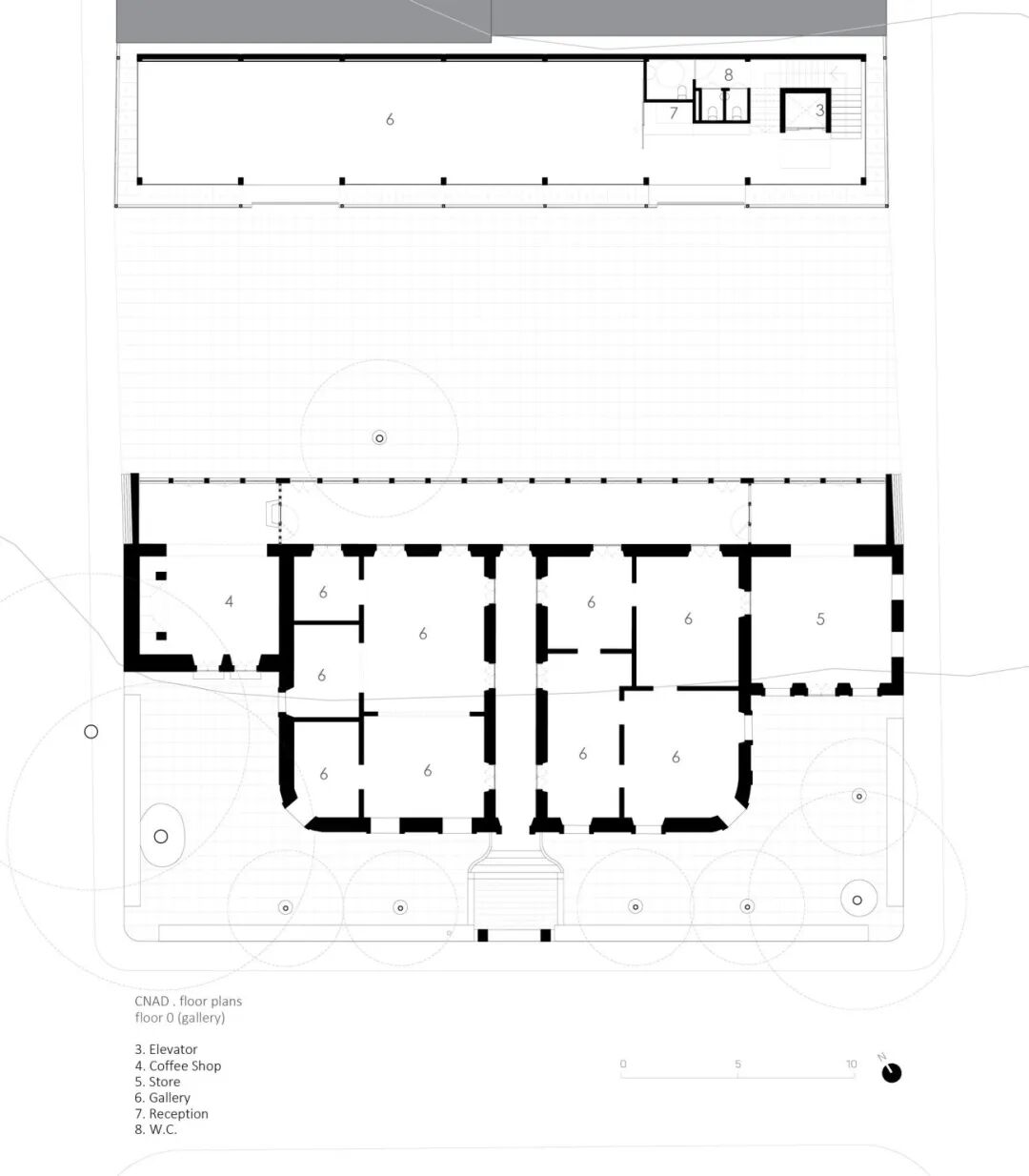场地包括一座在明德卢历史上发挥重要作用且已修复的老房子。除了这栋建筑外,后院还有一个露天天井和另一栋建筑。我们被要求修复庭院和后面的建筑,并与老房子产生联系。展览空间、咖啡厅、商店和品牌均来自CNAD的策展和设计团队。