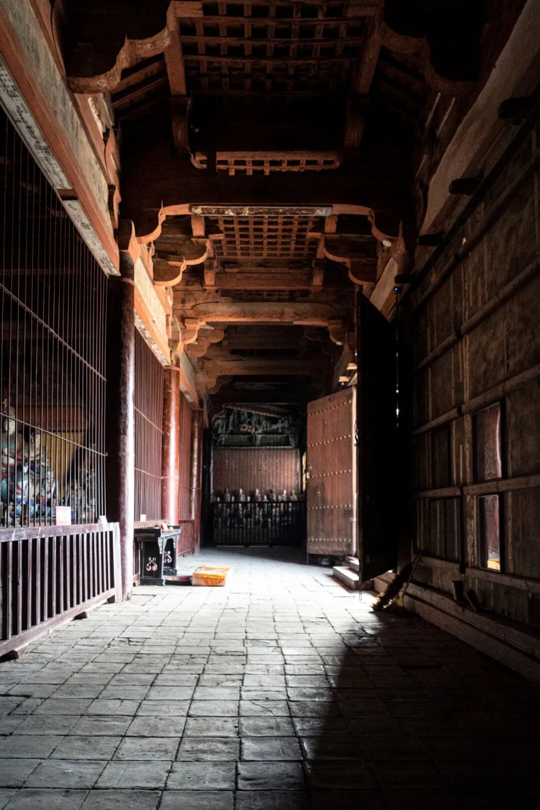 大殿的内部,一圈内柱切割出了中央的佛坛区域,环绕四周的外围则是礼佛空间。