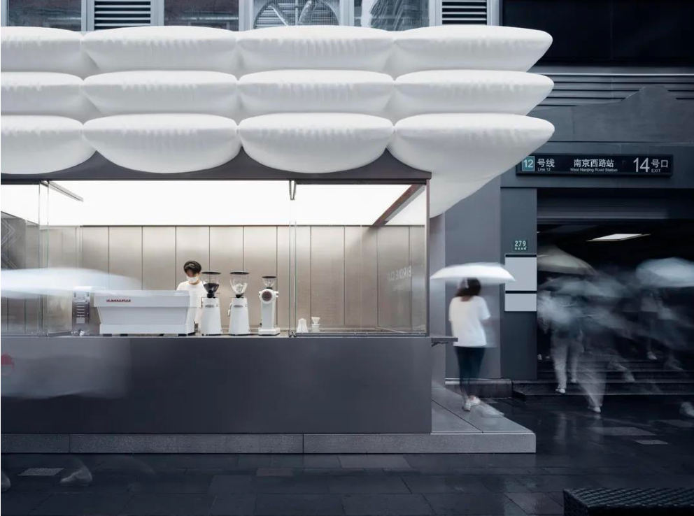 F.O.G.为小鸟杯咖啡小店设计了一个白色漂浮屋顶