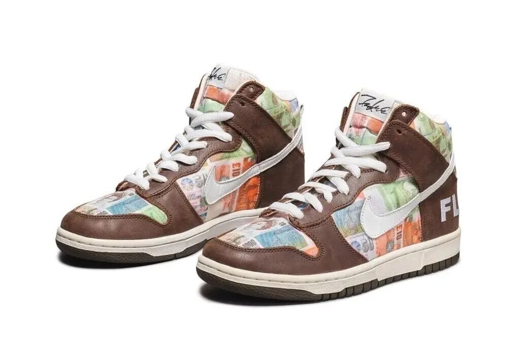 2020年,在名为 Cult Canvas 的主题拍卖上,一双尺码为US8的 FLOM 最终以$63000的高价被带走,这也打破了当时 Nike Dunk 类鞋款的成交价格纪录。