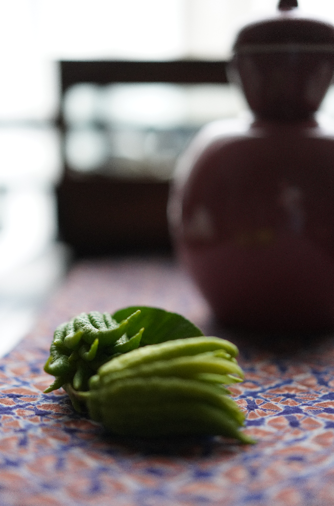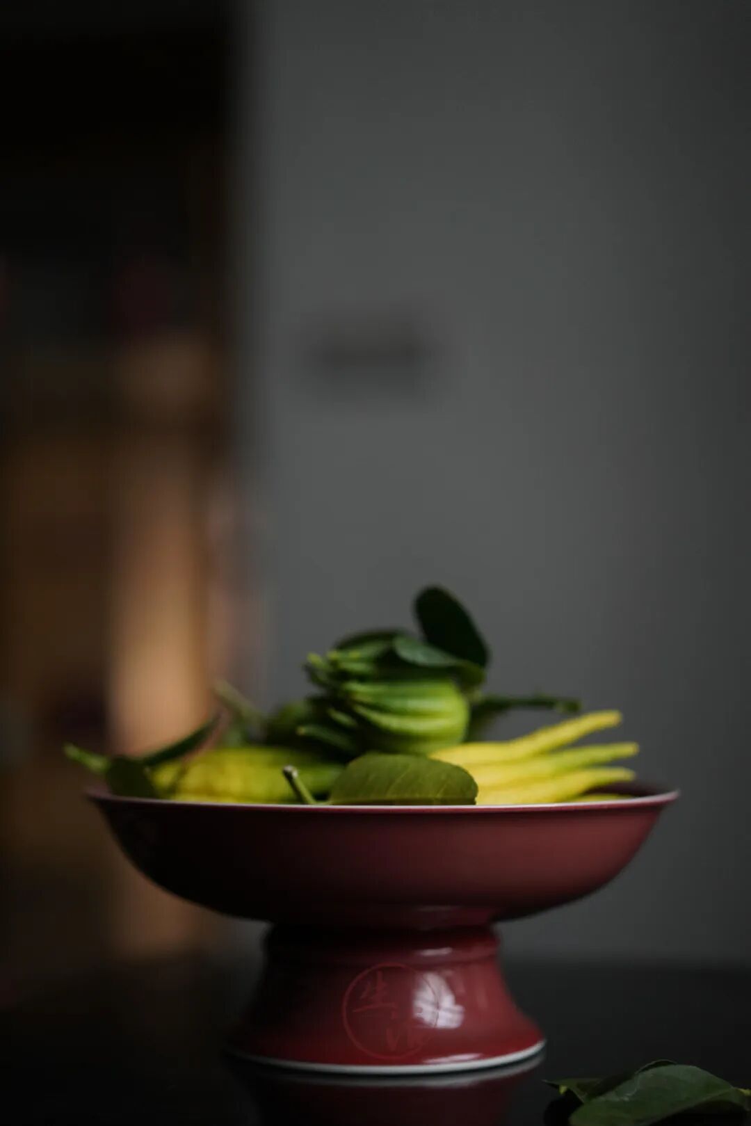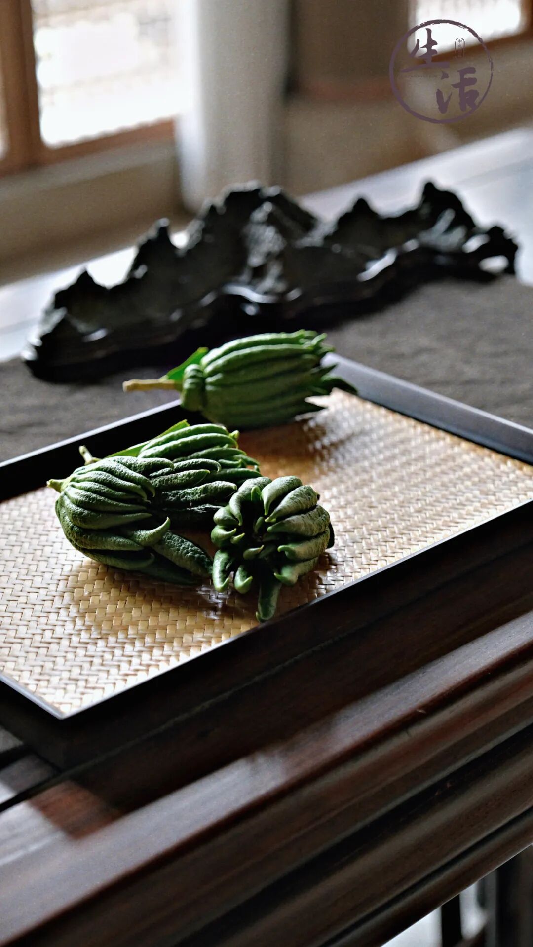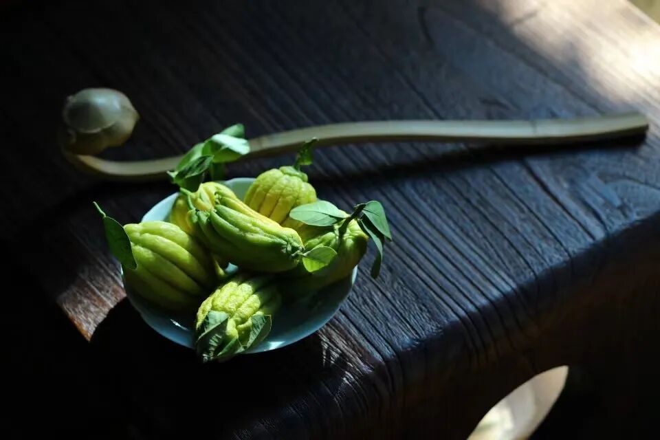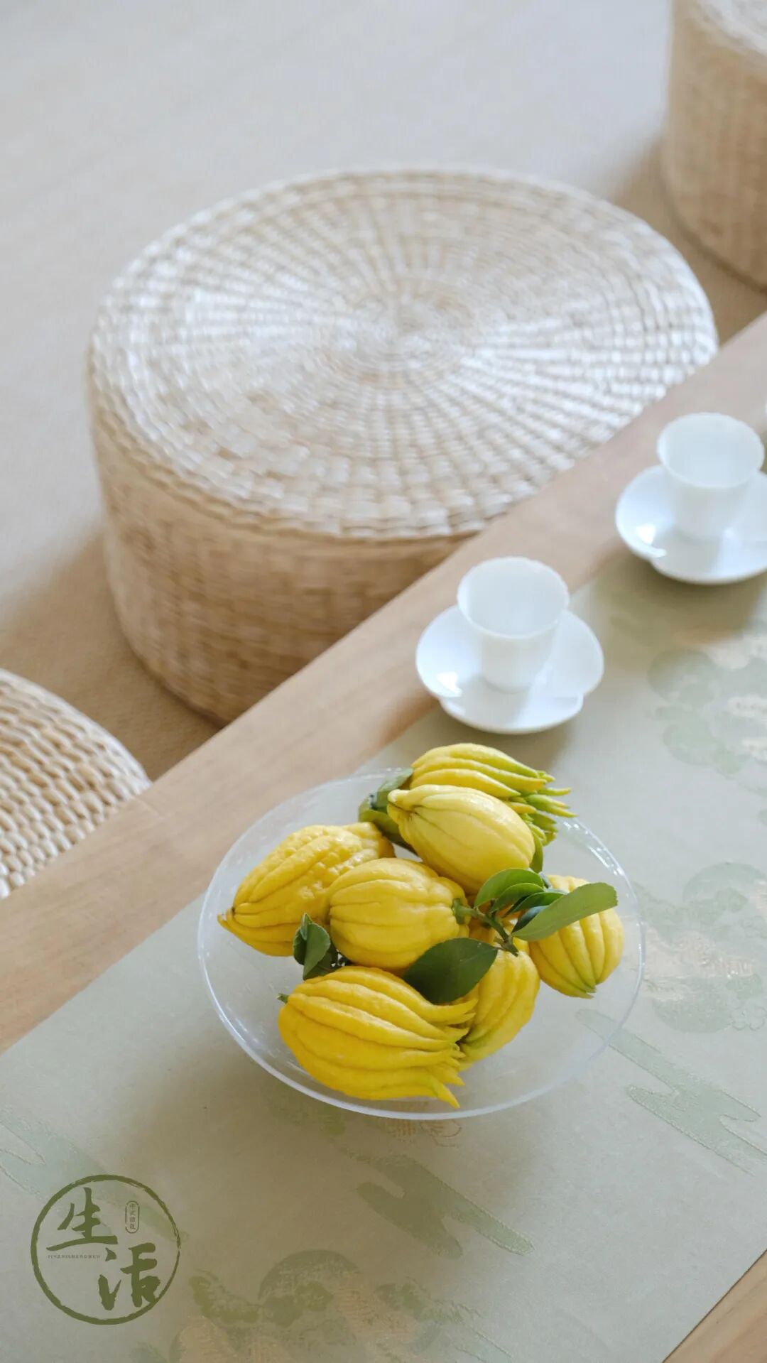 三两个佛手果,便能为室内茶席增色,无论是青色还是黄色,拍出来的照片都特别漂亮。