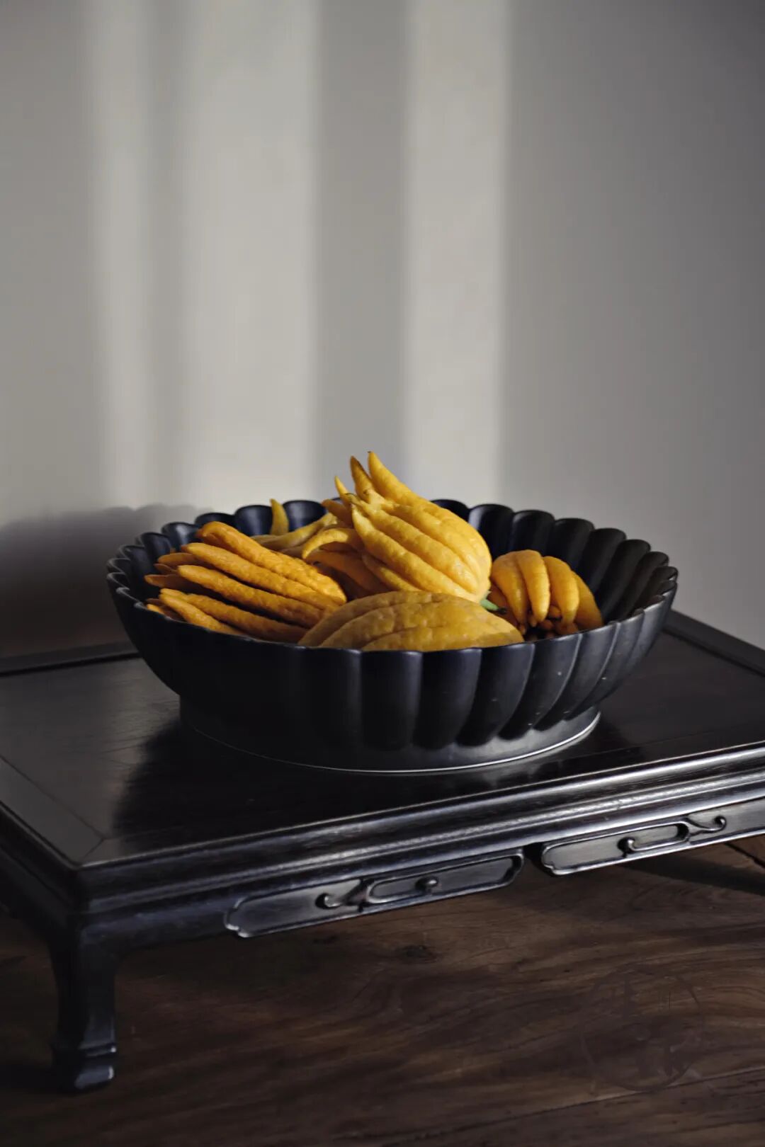 佛手除了可以置于案头,可单独摆放香几上,还可以置于茶席之间。
