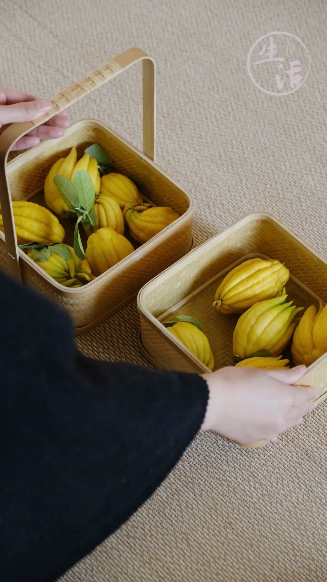 摆上去都会赏心悦目,除此以外,竹制品盛放佛手,也是特别漂亮的,大家喜欢的不妨试一试哦。