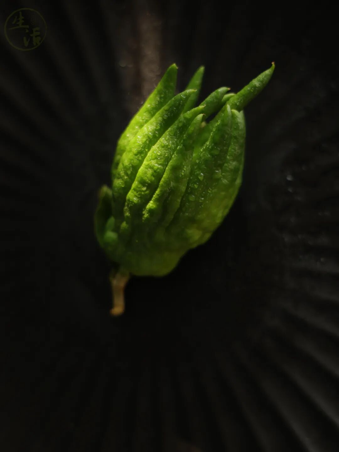 现在发货的佛手是青佛手,有清供摆盘的佛手和插花水培的佛手两种。