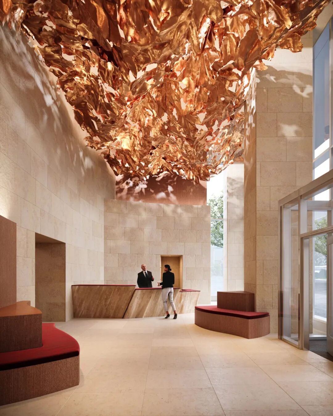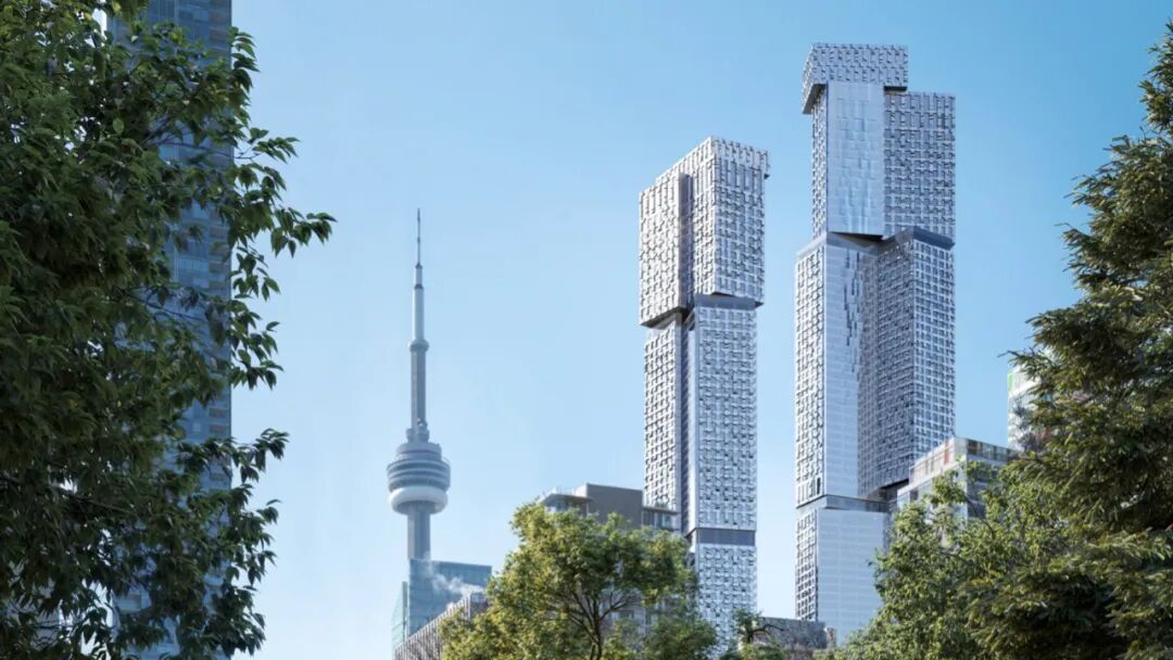 光滑、反光的玻璃表面将与带有雕塑褶皱的不锈钢覆层搭配,使立面看起来像涟漪一样。块状之间是玻璃条,以突出塔楼脱节的视觉效果。在整个项目的设计中, Gehry 一直坚持认为这些塔楼应该代表多伦多的独特之处。