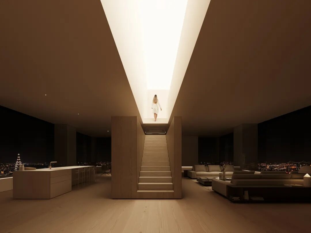 这个空间不是一个公寓,而是一个空中的房子,寻求最大化它与城市的关系。