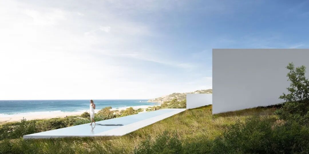 位于塔里法安达卢西亚海岸的普拉塔海滩,为了优化景观视觉,设计将一系列细长的空间交织在一起,以适应下降的地形。 每一件作品都被放置在前一件作品的半层之下。 这样交替排列的方式让所有的空间都能够看到海滩。