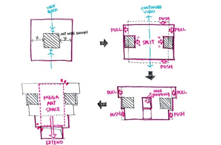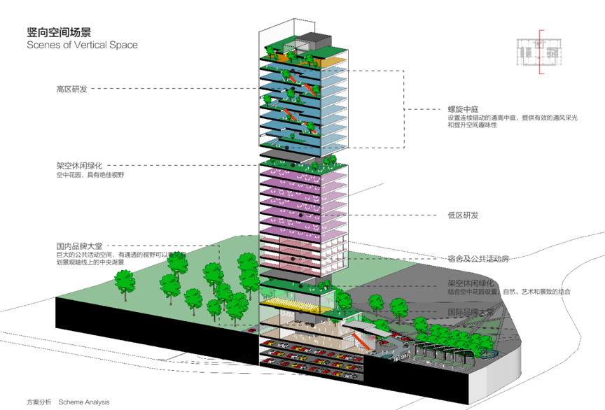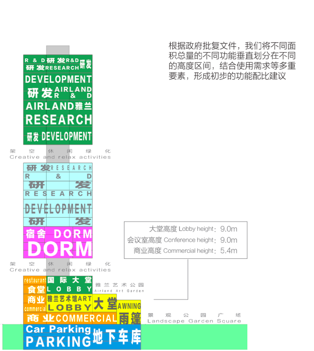与此同时,架空的空中花园将研发与宿舍、商业、食堂等其他功能划分开,以保证更为合理高效的动线。