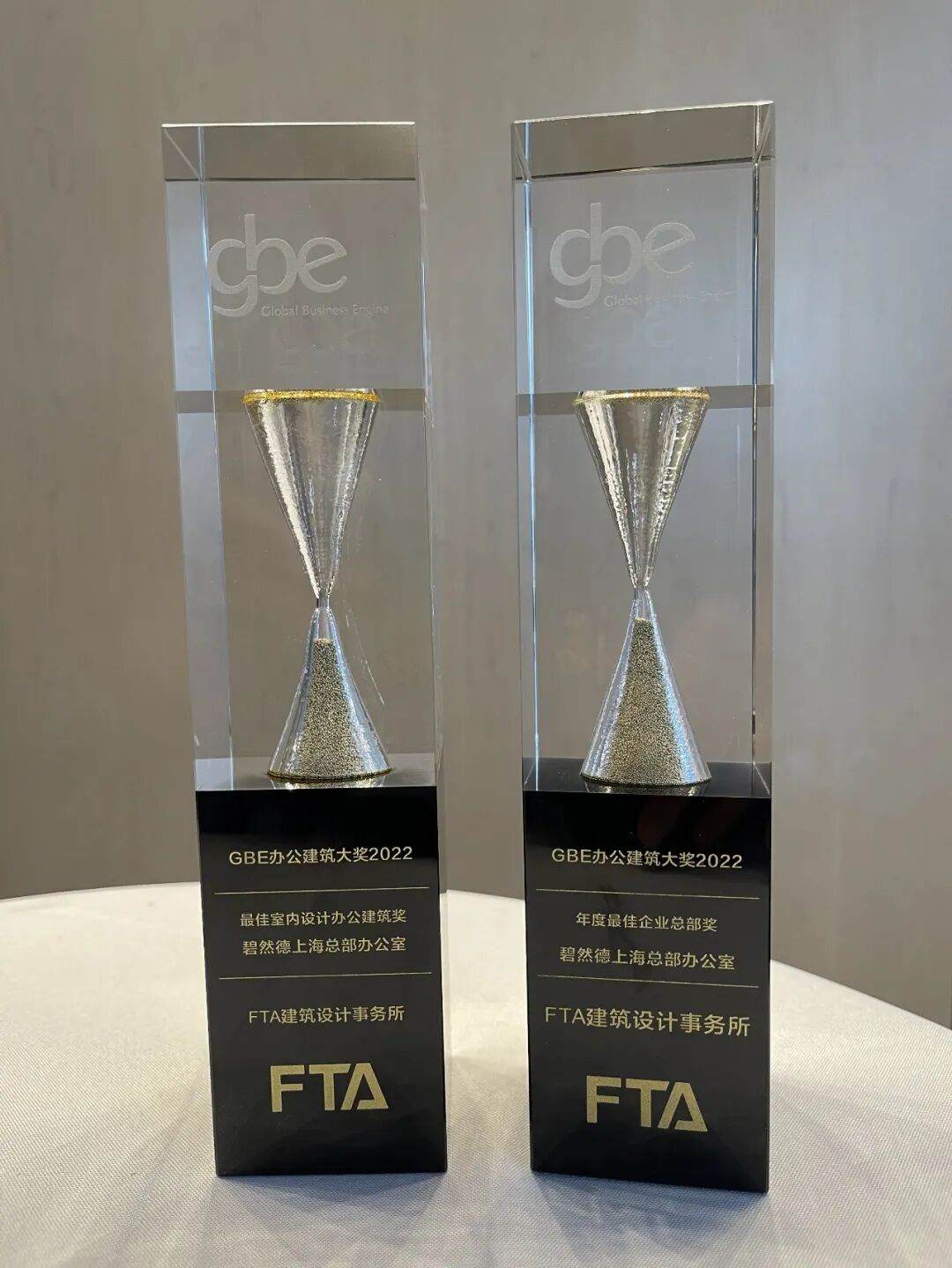 同期,2022GBE办公建筑大奖公布最终结果。FTA设计的碧然德上海总部办公室项目从众多国内外优秀作品中脱颖而出,荣获年度最佳企业总部奖与最佳室内设计办公建筑奖。
