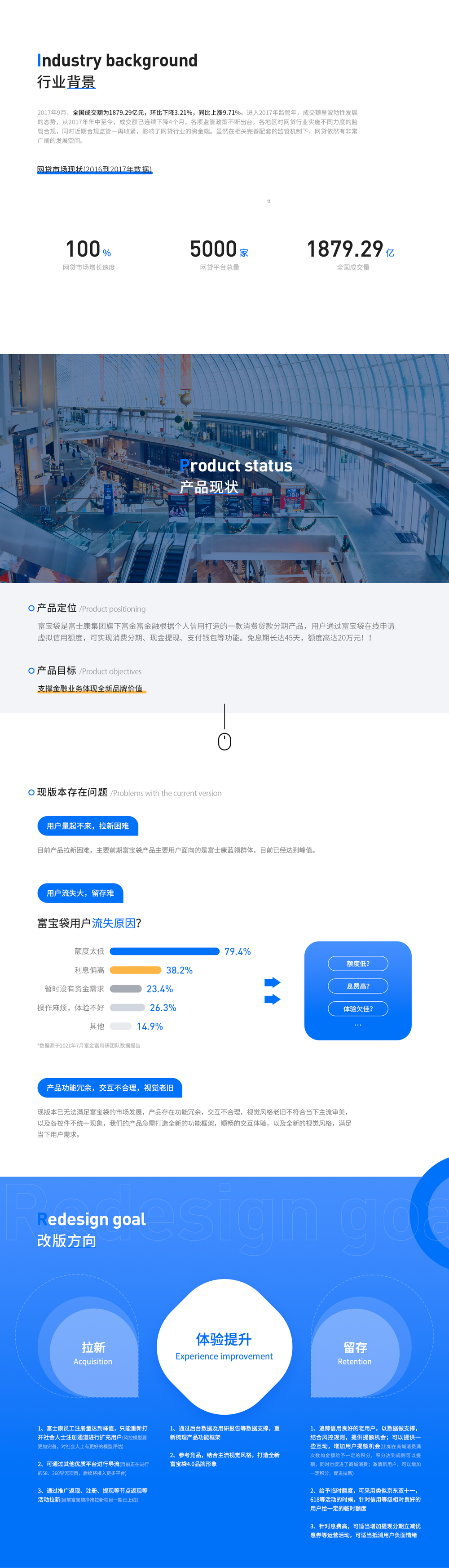 2020年接手富宝袋产品后,开始有意识的从产品业务层面分析产品,更主动的加入产品前期分析、原型绘制等工作,关注产品数据推动产品设计,在经过N多轮的需求评审后,2021年11月份富宝袋4.0顺利上线,整体满意度回收评分达到92分。