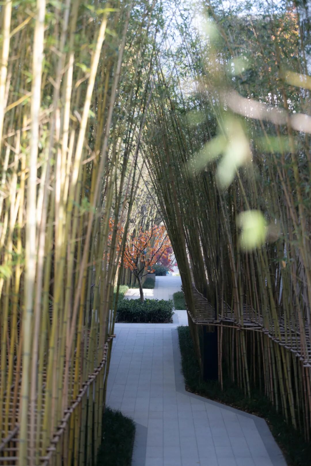 舒适惬意的林荫归家路,入户两侧的植物空间精心布置,藏纳着四时不同的风景,同时消隐建筑边界感,让自然四季与美好生活时间接轨。