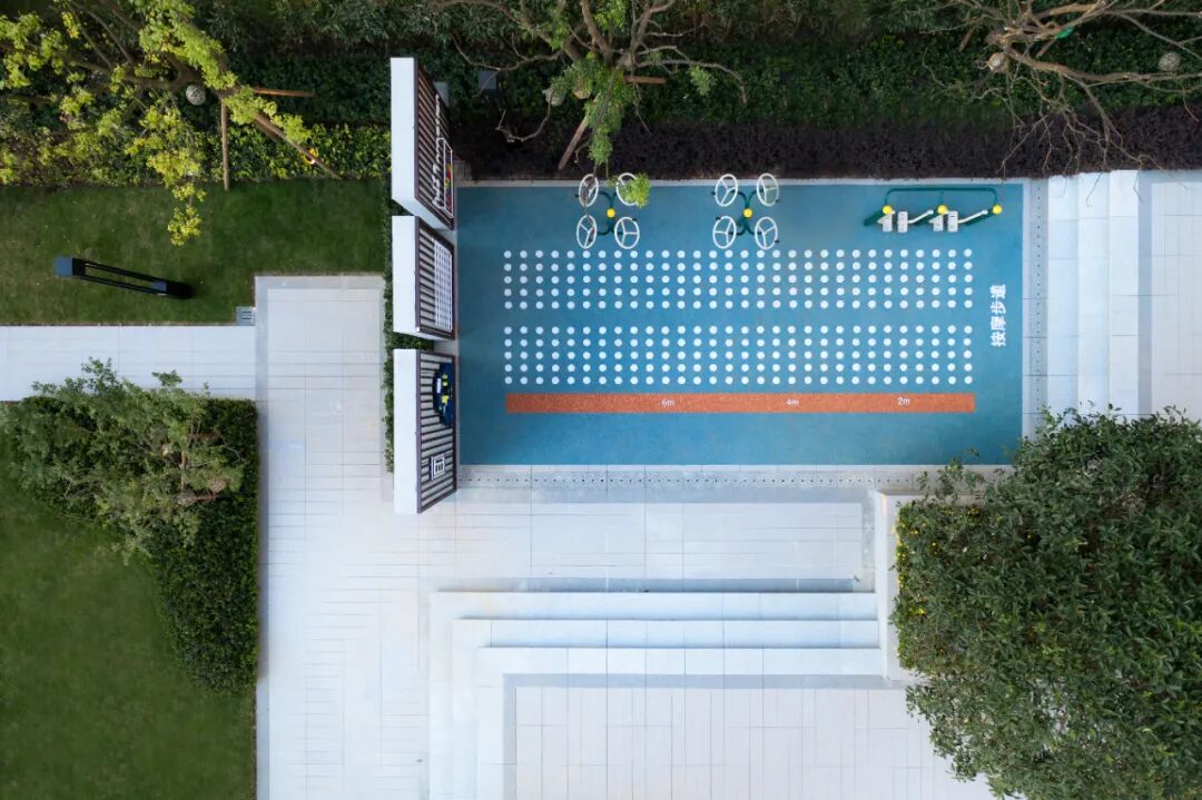 岩孔灵泉:根据场地竖向塑造多层次的空间体验景观,在行进中感受空间的变换感,步移景异;设计上运用简洁的直线线性构成,通过功能属性的区分打造平面与立面的多维度景观空间层次与节奏感,营造丰富游览体验动线;可进行休憩、散步、嬉戏、健身等生活中的大部分活动;清闲之时,停留林下听鸟语闻花香,绿景环绕,意境深远,体验栖居美学。