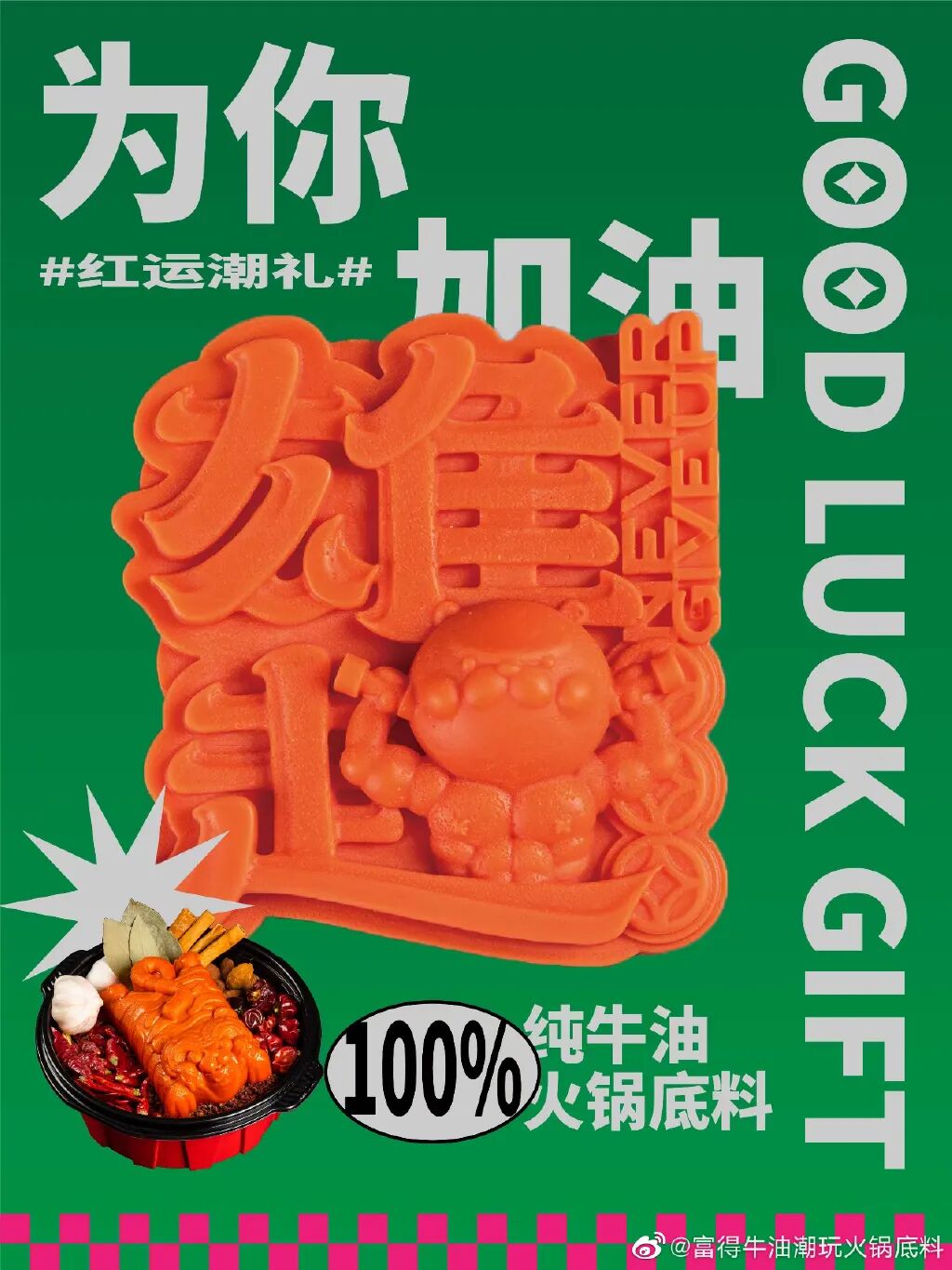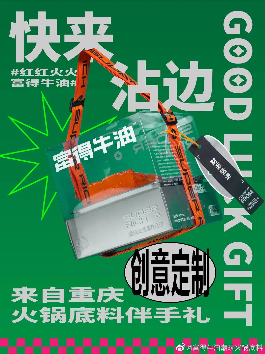 今天给大家分享一款年轻潮流的火锅底料品牌设计案例,为了迎合轻消费也是拼了,纷纷各出奇招,首先名字就很有意思----"富得牛油",直接打破了火锅底料的刻板印象!