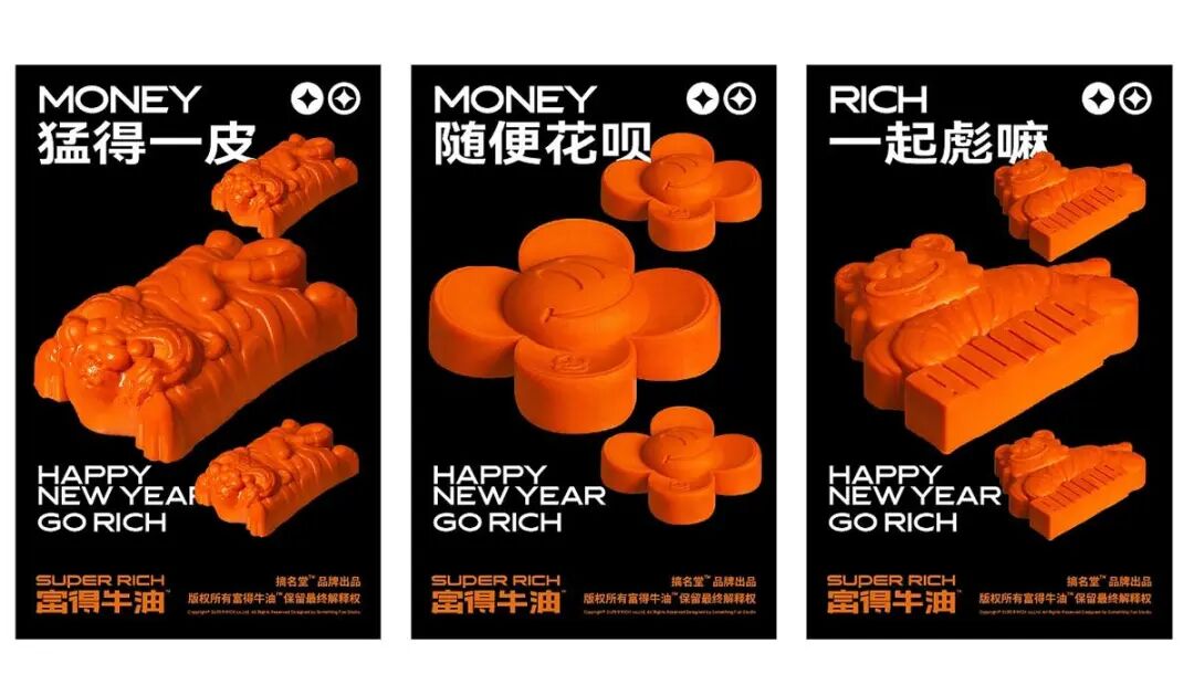 再者设计也很有意思,更潮流的视觉体验设计,以充满社交属性的造型牛油,为富得牛油品牌和产品树立差异化形象,一起和海豹君来看看他的海报创意吧!