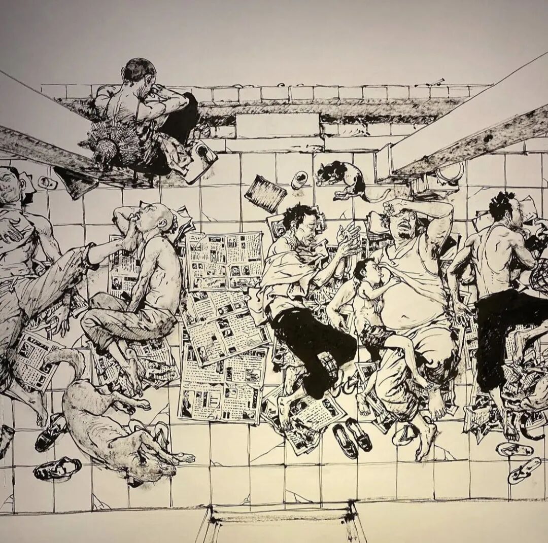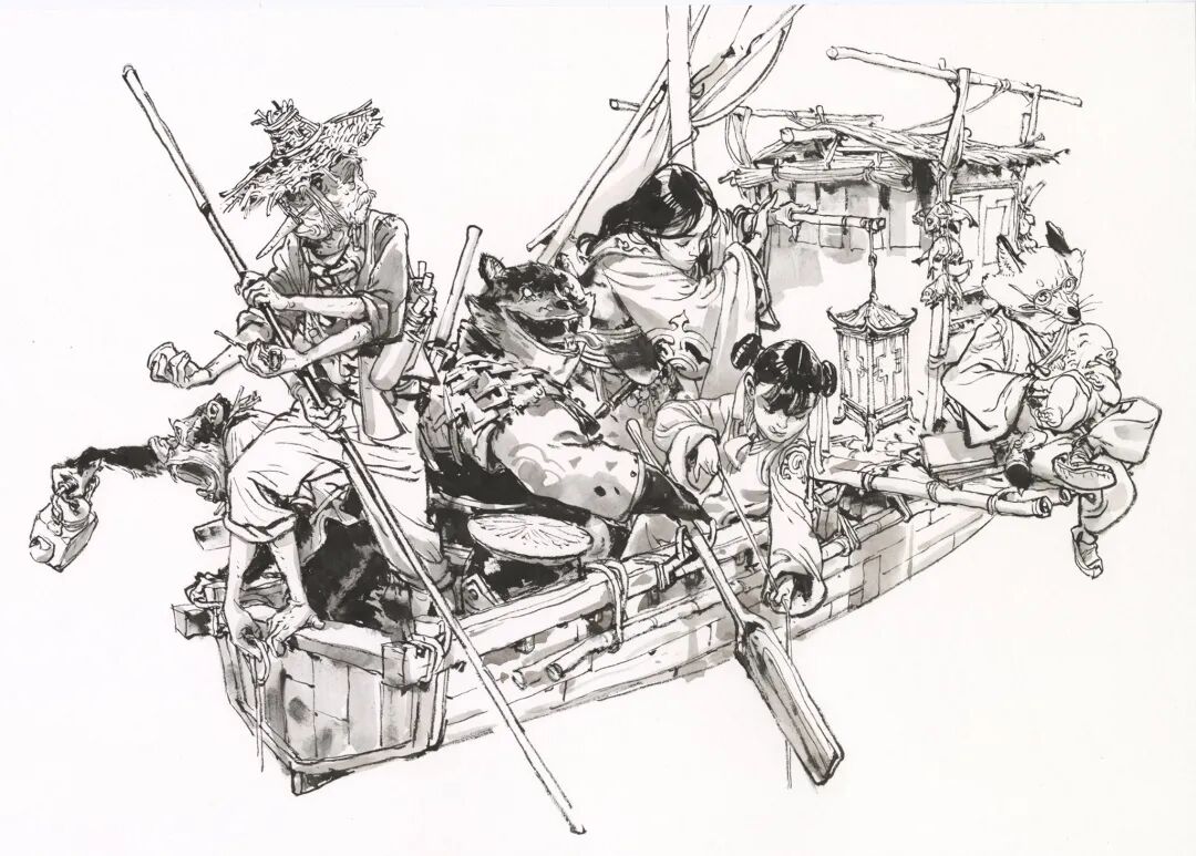 他的速写画中构图布局、章法考虑全在心中,笔触之快,画面感、故事性之强不免叫人惊叹。