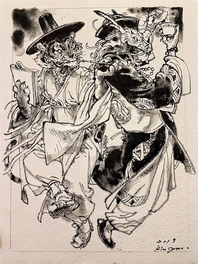 与此同时,他也教画画,还会分享作画实况录制的视频,很多小伙伴在学速写的这条道路上,一定也都有被金政基老师影响到,这也让他在 YouTube 上一炮而红。甚至在韩国总统选举期间,他还被请到电视上表演作画。