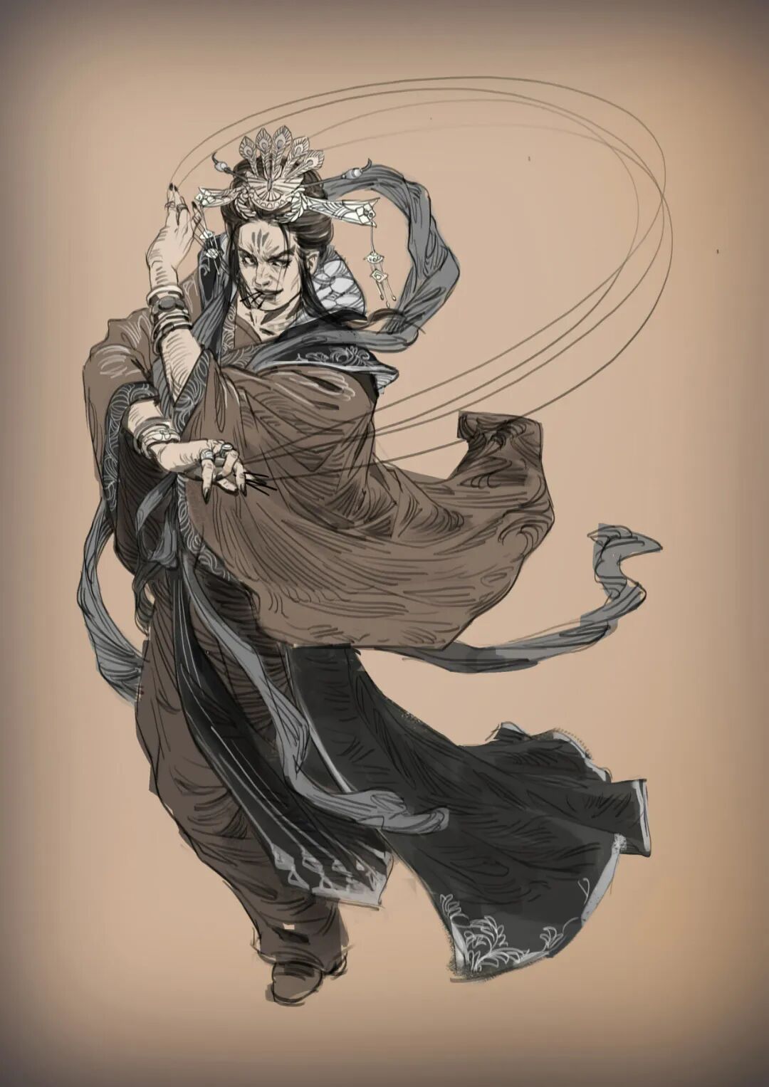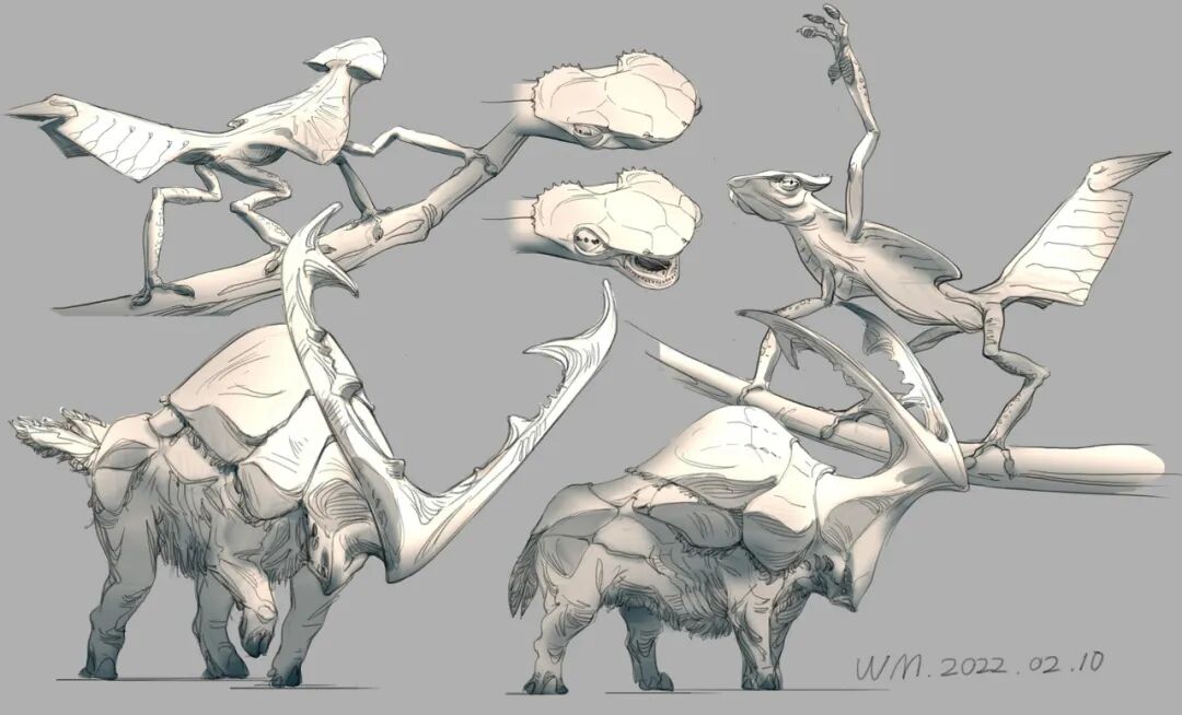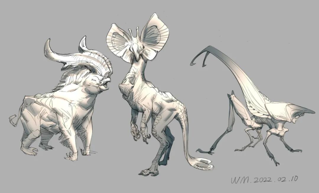一般题材和内容比较随性,比如我最爱的金庸去世了,就创作了几张小说内的角色。想在墙上挂点东西,于是就画了几张日式装饰画。最近心思在动物上,奇异的想法层出不穷,就在过年时画了一堆生物概设草图。现在又想做模型了,或者用新的技术和理念画氛围图,肯定会比《孤岛惊魂》时期更好,有空就会去做吧。
