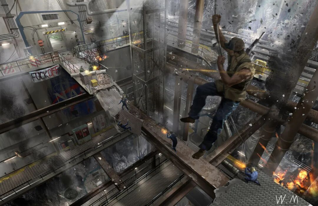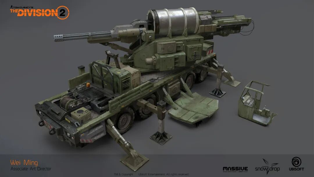 18年我申请加入了《全境封锁2》项目,主要工作是道具原画的外包管理,内容包含所有种类的概设,每一件道具背后都要做大量研究,这是个难度极高压力极大的项目,我要保证团队中所有人都达到连我自己都觉得很吃力的水平,经常加班到深夜。好处是对设计的理解以十倍速度突飞猛进,坏处是完全没机会自己创作,这时候非常庆幸大学里学的非常驳杂,使我可以随时切换审美和工作流程,无论要求怎么变都不会卡壳。