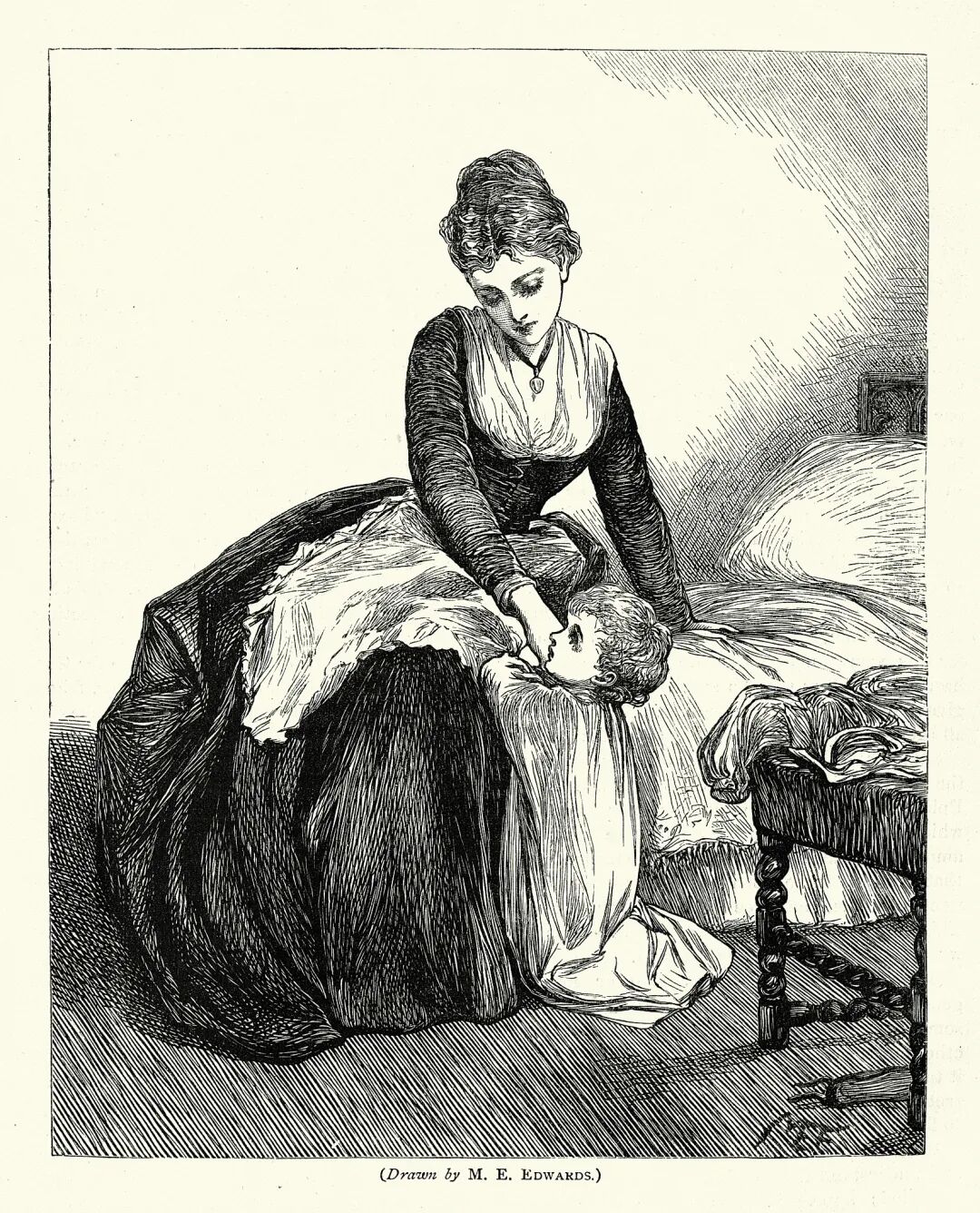 「家庭天使」成为对女性的最高评价。温顺,缄默,高尚,无私,要成为甘于奉献、自我牺牲的好妻子,好母亲,以自己的美德衬托她丈夫的伟大。