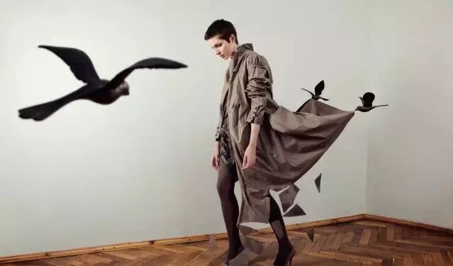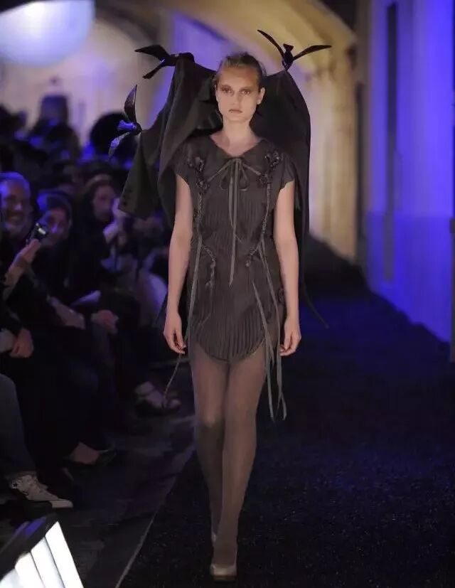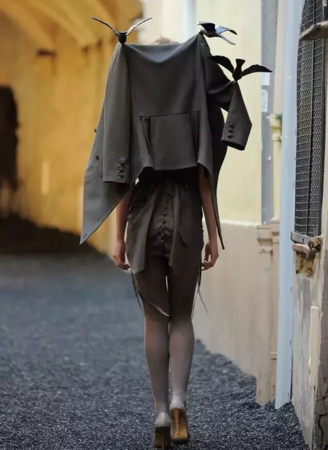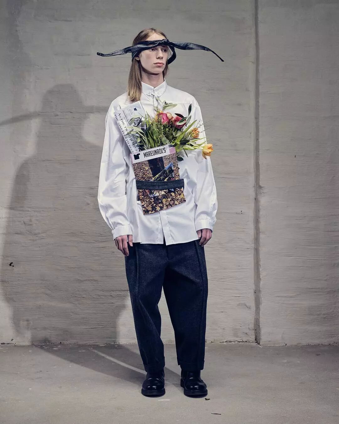 MAREUNROL'S的独到之处在于其设计的衣服时常伴随着出人意料、且充满视觉吸引力的设定。回顾他们的早期作品,衣身的一角由飞鸟悬空抬起,这种超现实、又有点阴郁的传达方式表现得尤为强烈。