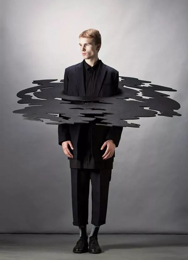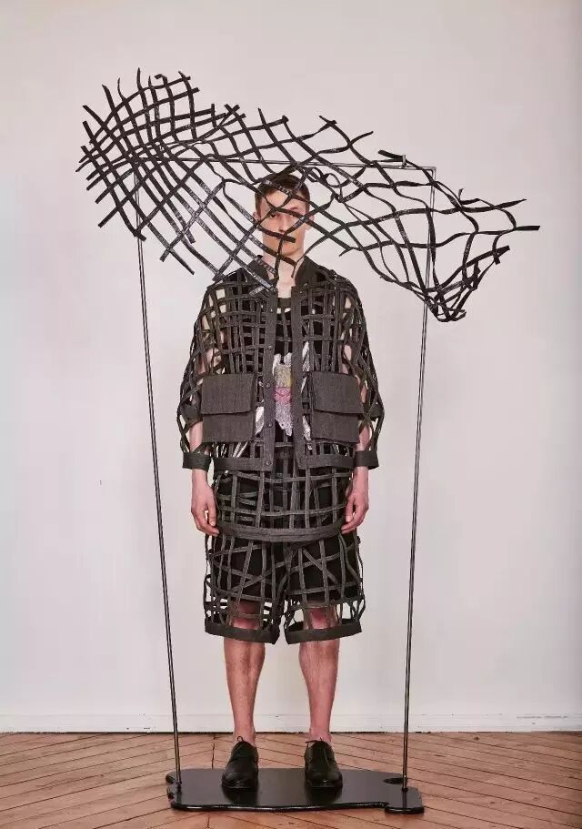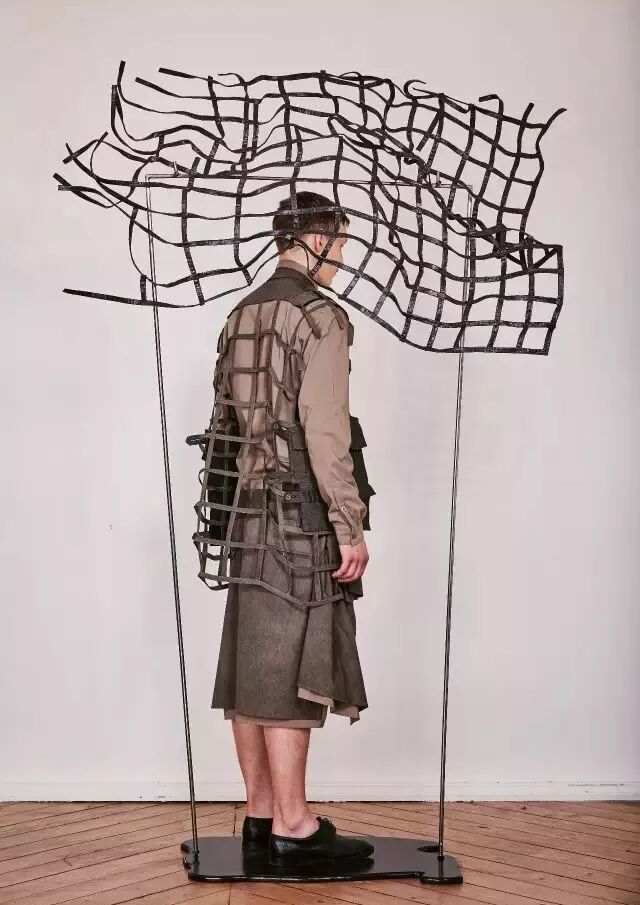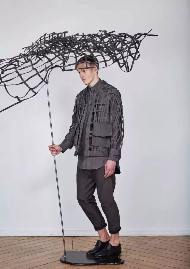 忽然间,男人发现自己就像迷失在迷宫的中央...必须需要找回自我来逃离这个迷宫。”设计师将象征着上班族迷茫与困惑的情感元素,以丰富的细节以及夸张的装饰融入了此次系列中。