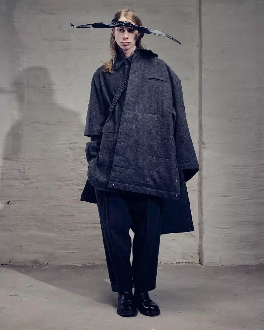 围绕着对于剪裁、廓形以及功能性上的思考,设计师在FIELDWORK NO.3系列中试图解构人们对男性时尚的一贯看法,并延续了神秘而又古怪的作风。