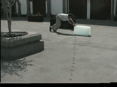 艺术家在9小时内将一块冰块推过墨西哥城的街道。