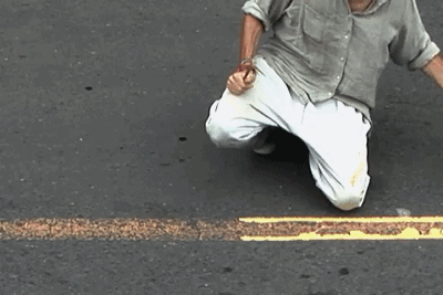 艾利斯在前美国巴拿马运河的一条道路上精心重新粉刷了60条黄色中间带,该地区连接大西洋和太平洋,作品将绘画与表演、诗意与政治相结合。