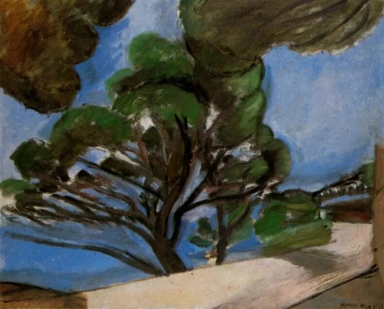 “……几年前我沿着道路行走,突然发现来到了马蒂斯绘画的主题中,1926年的《安提比斯角公路》。我的手肘紧紧地压在墙上长满青苔的石头上,直到我觉得我能照出马蒂斯的主人公所看到的样子并把它画出来。果然,我在那里找到了旧调色板上的鲜红色、群青、紫色、柠檬色和翡翠色的刮痕,所有这些都在一个小缝隙深处氧化了。这一发现让我激动不已,但并不惊讶,至今我仍满怀激情地回忆着。体验站在伟大画家曾经看到的地方知道他所看到的和我现在所看到的是一样的,但是通过他的绘画,通过他的笔触,通过他选择的扭曲视觉数据……这是一种必不可少的体验。它赋予人们对过去的认同感,并与一位伟大画家分享一种真实的体验。”