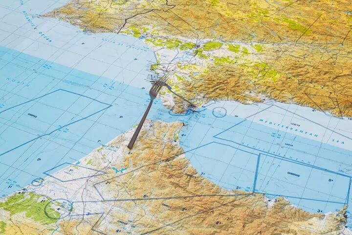 直布罗陀海峡地图,2008,两个不锈钢叉子,20 x 3 厘米