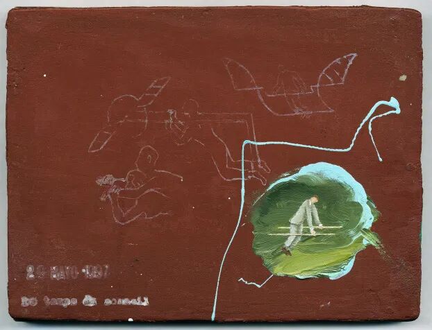 无题(“在你到达河边之前不要过桥”的研究),2007,木板油彩和蜡画,18.4 x 26 厘米