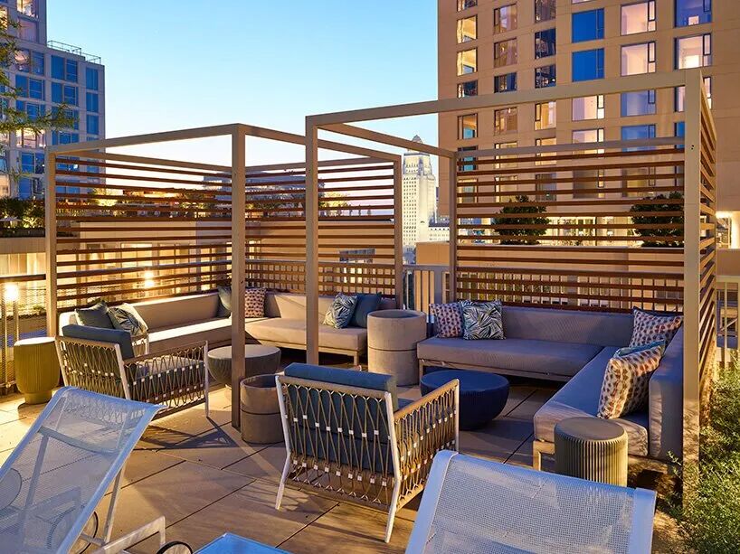 弗兰克·盖里 (Frank Gehry) 在酒店的户外休息区
