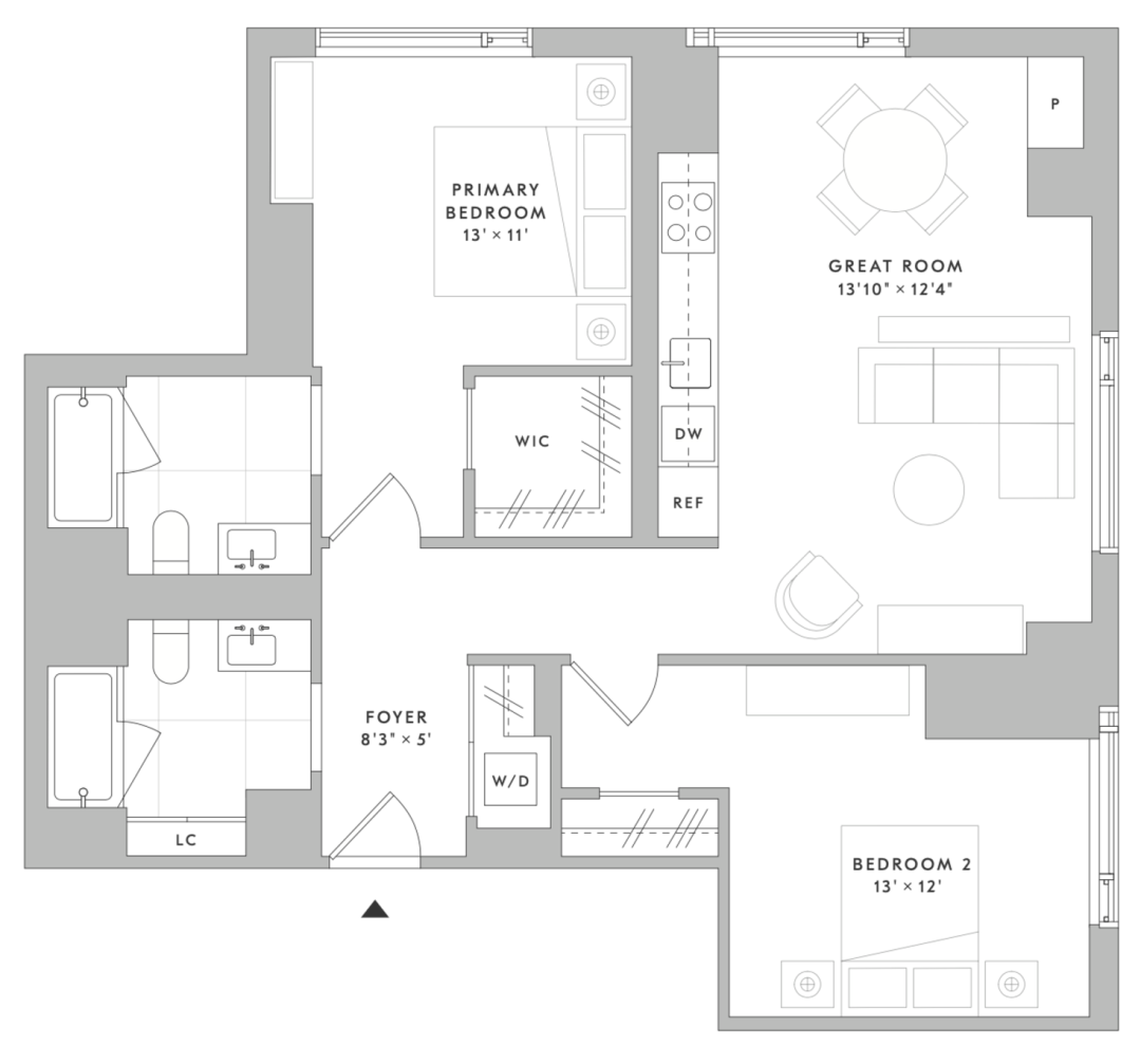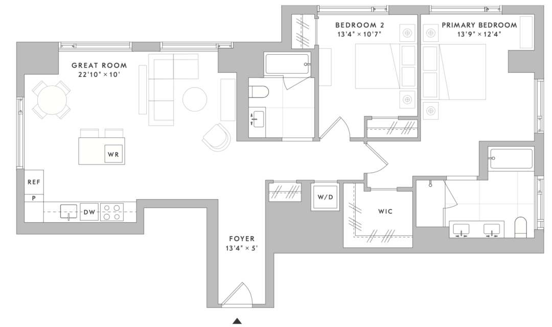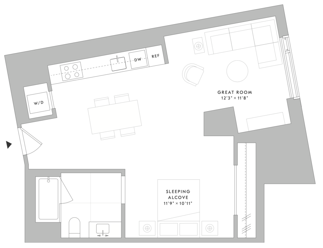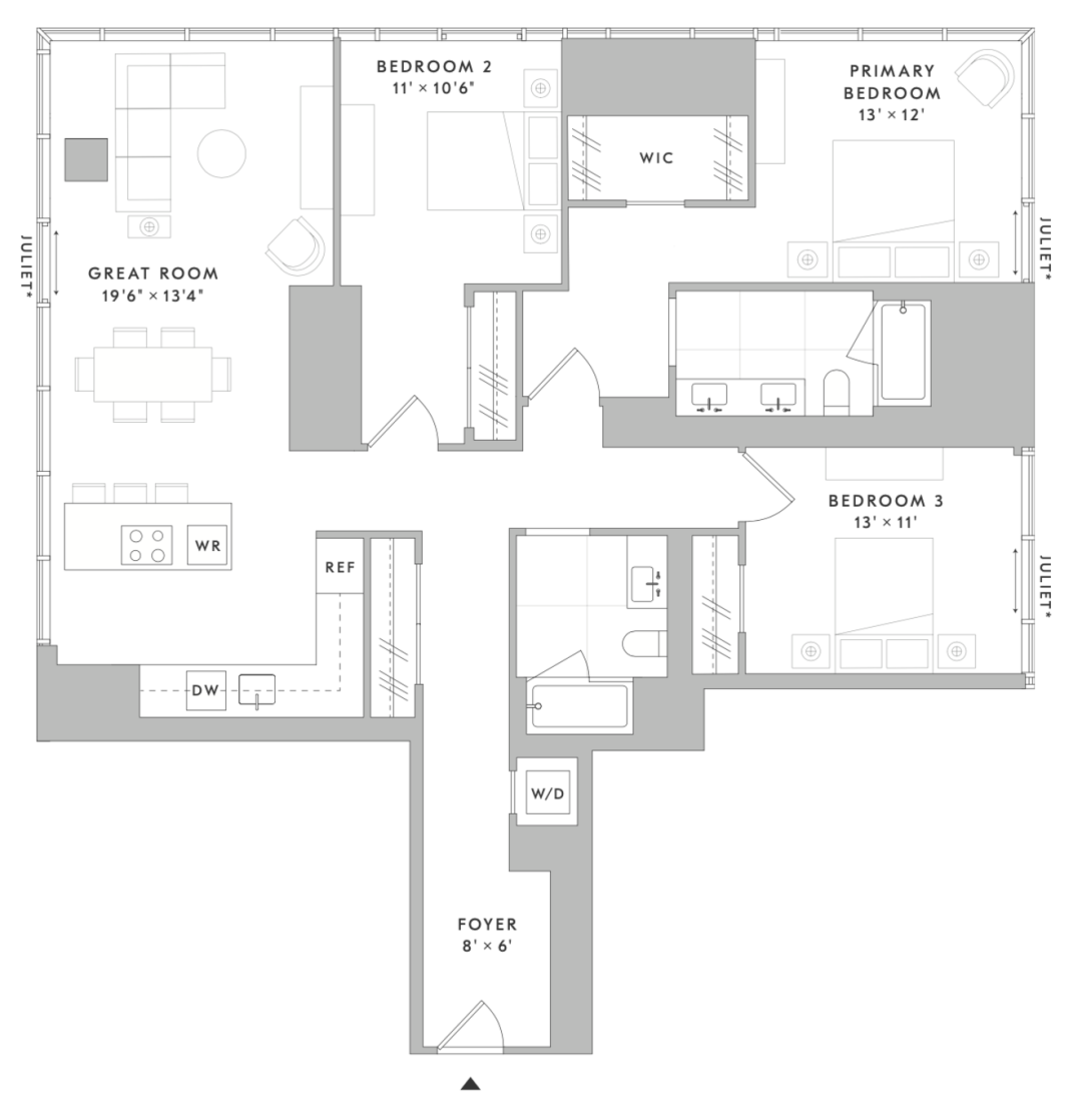 住宅公寓高 45 层,拥有 436 套定制住宅。住宅包括宽敞的一室公寓、一居室、两居室和三居室,室内设计由设计师Tony Ingrao设计,公共空间由David Rockwell 和Rockwell Group设计。