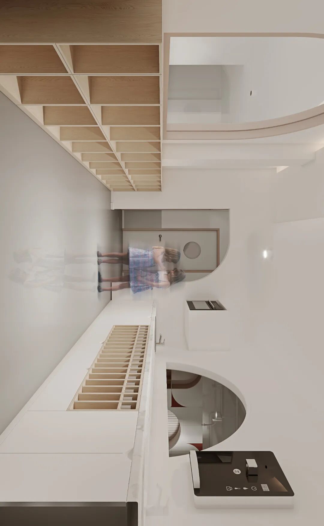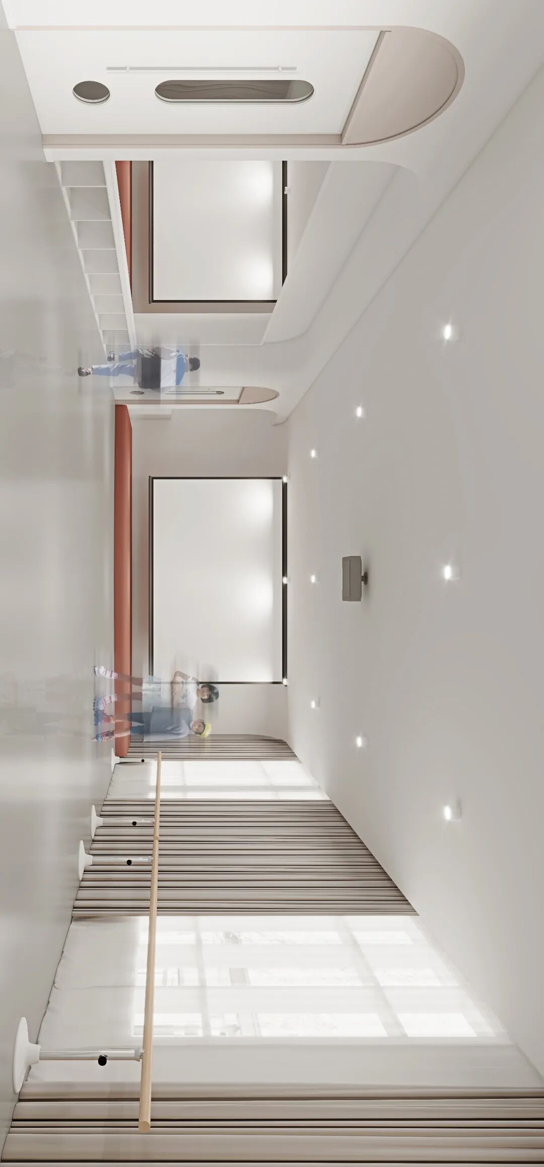 墙面的挖空区域的玻璃窗可以清楚的看到活动室区域空间,在保证隔音的基础上也增加了空间的通透感,内部的空间处理也使得动线更加丰富多姿。