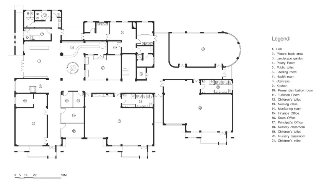 生活中,作为人父的我会有意识地和孩子或一起出游玩耍,或只是蜷窝于沙发和她很放松地聊聊天,从自己的孩子的身上窥见孩子的心理变化,幻想中的世界。他们是那样的天真无邪而富于变化,强烈的好奇心使得他们不甘于安静地静坐沉默的,等等,这些都成为我们在创作时所要考虑的元素。另一个服务的群体是家长。孩子入园,家长必须入学!因此我们在创作时还要考虑家长的感受,充分体现人性化。接送孩子时的休憩空间是否舒适温馨?参加亲子活动等一些公共活动时的空间是否宽敞、个性独特?…