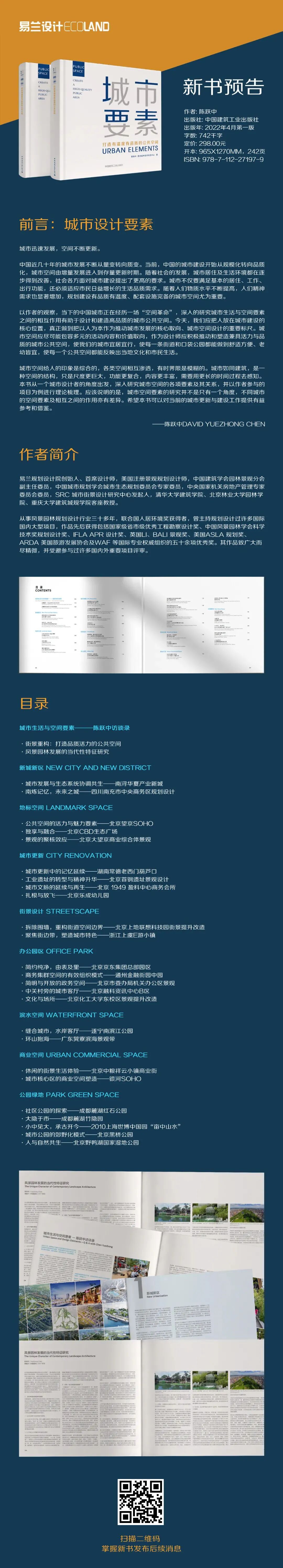 易兰从一个城市设计者的角度出发,深入研究城市空间的各项要素及其关系,并以参与的项目为例进行理论梳理。应该说明的是,城市空间要素的研究并不是只有一个角度,不同城市的空间要素及相互之间的作用亦有差异。我们希望通过《城市要素》这本书可以对当前的城市更新与建设工作提供有益参考和借鉴。