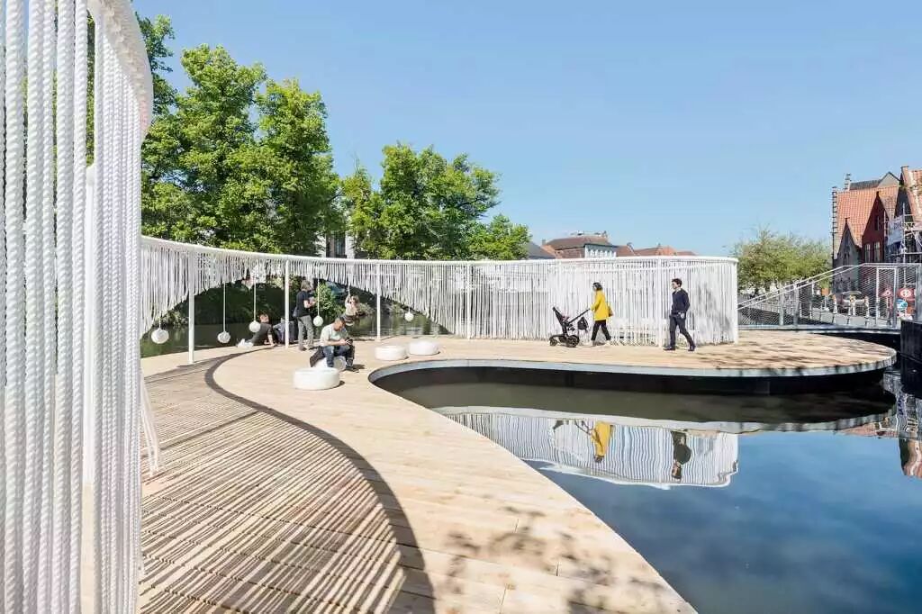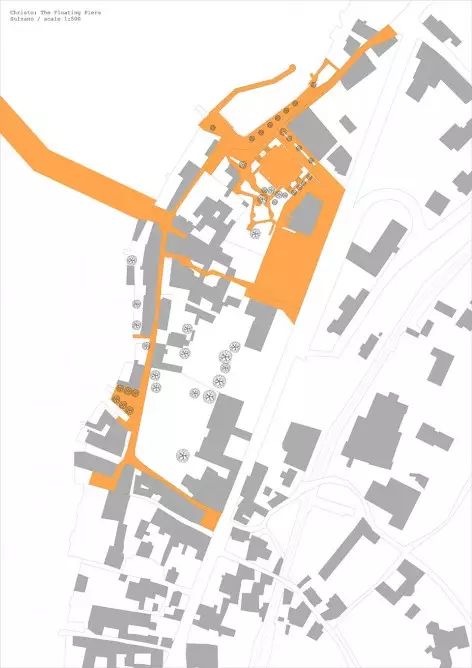 具有内聚性质的下沉空间以空中浮桥接连形成桥下与桥上空间