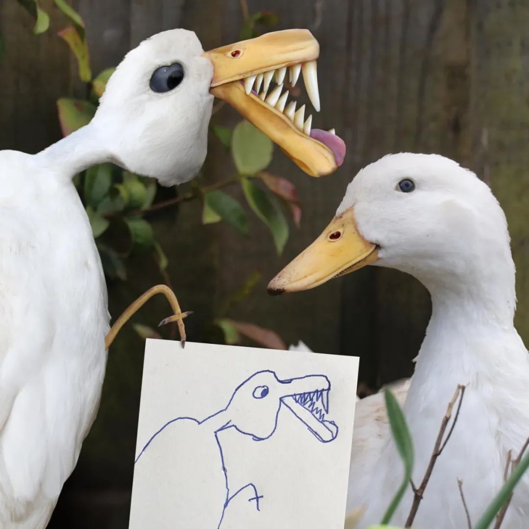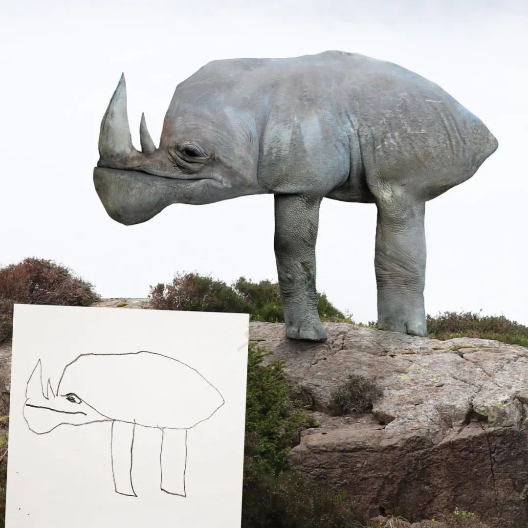 很快,汤姆便淡定下来了,当他看到六岁和四岁的儿子,举着自己的“大作”,满脸期待地求表扬的时候,这位年轻的艺术家突然就有了一个比随便说几句夸奖更好的方式,他决定将孩子们画出来的“不明生物”真实地呈现出来。